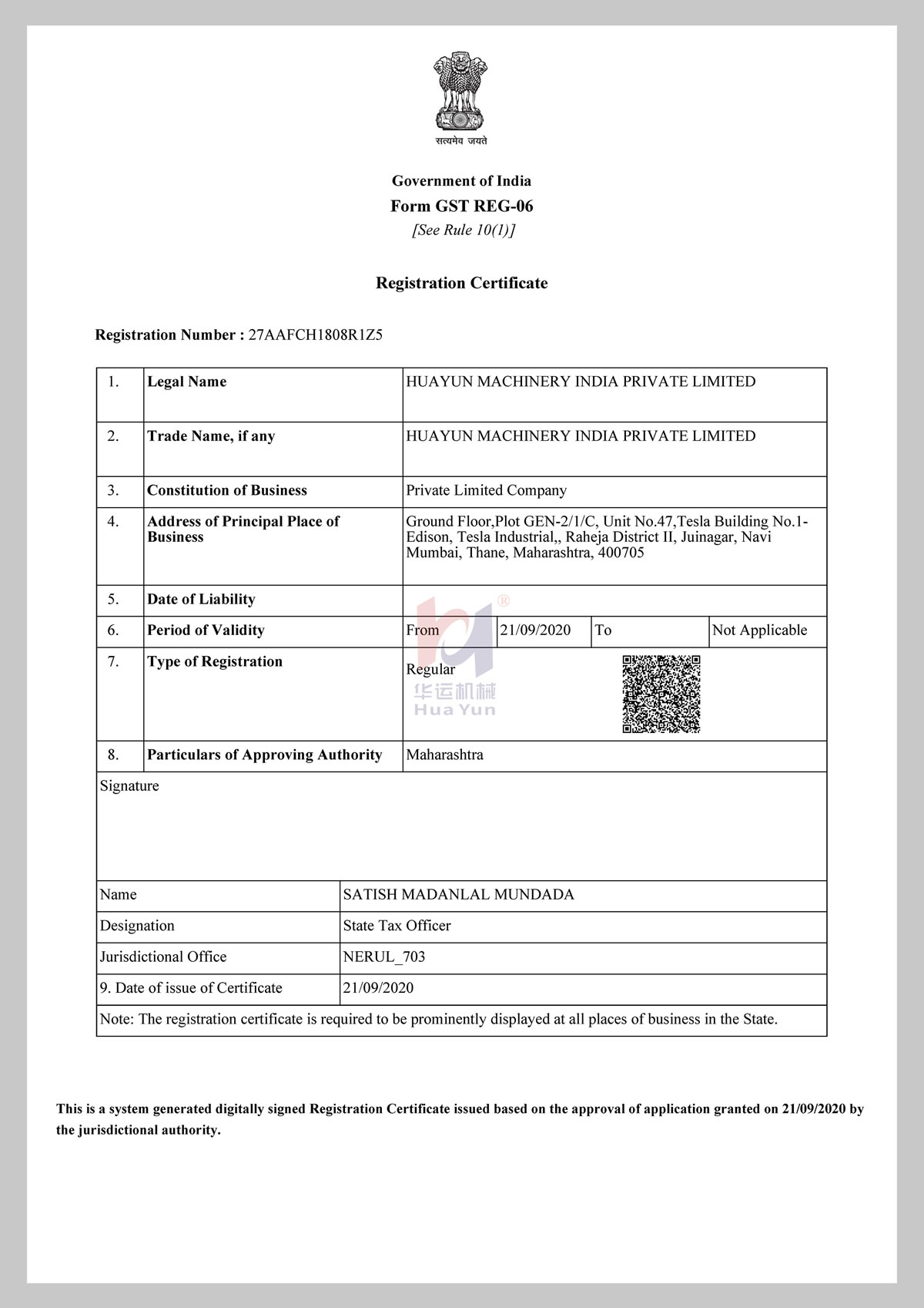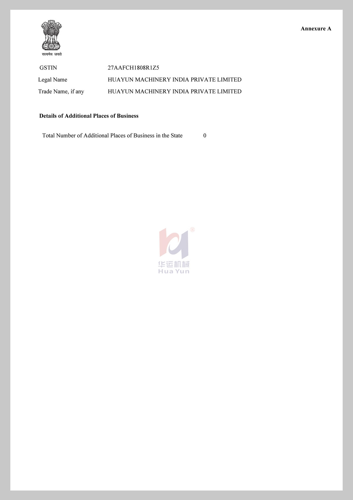 印度分公司營業執照及稅務證